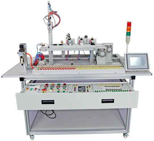 實訓裝置臺架為鋁合金導軌式,實訓考核裝置 PLC 模塊的 I/O 端子、變頻器的接線端子、各常用模塊與 PLC 的連接端子,均與安全插座連接,使用帶安全插頭的導線進行電路連接;各指令開關、光電開關、傳感器和指示元件的電路,則通過端子排進行連接。插拔線連接電路與端子牌連接電路相結合,既保證學生基本技能的訓練、形成和鞏固,又保證電路連接的快速、安全和可靠。