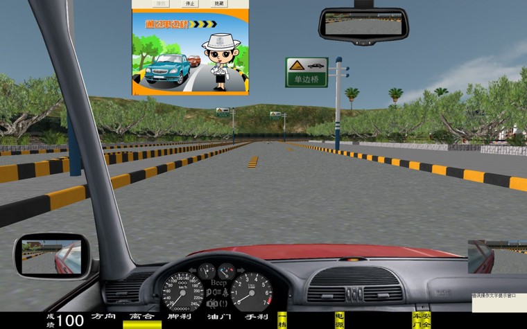 華育寬頻 HYM-9 型汽車駕駛模擬器是一種 80 度視角配 22 寸液晶彩顯的多功能新一代的主被動式汽車駕駛模擬器。它突破了原來在行駛十字路口向左拐的視線盲區,行起車來更加方便逼真, 從而清楚的觀察車輛與路面的位置關系。是目前市場上絕對最新版的汽車駕駛模擬器軟件。 一、界面顯示 新增加 有: 轉向、 油門、 剎車、 離合器深淺進度; 檔位、 訓練成績, 后視鏡(左、右、中)、 場景地圖顯示; 界面儀表盤上顯示有: 車速表、 發動機轉速表、 大燈、(遠光燈、近光燈、視寬燈)、 轉向燈、 安全帶提示燈、 車門關閉提示燈、 機油燈、 電瓶警告燈等。 在訓練過程中、通過雙擊鼠標、可實現正視和俯視圖像駕駛之間切換。 三、本模擬系統界面里不同車型之間自由轉換,其車型有: 小轎車、 吉普車、 無級變速車(自動檔)、 農用車、 大貨車、 大客車、 (車型等多達六種學員可以在模擬器上體會不同車型的駕駛體會與樂趣) 四、學員可以根據自己駕駛的熟練程度選項訓練,分三級訓練,即 1 、初級駕駛; 2 、中級駕駛; 3 、高級駕駛訓練: 初級駕駛訓練 :初級駕駛可分為六種車型和三種練習方法,即 1 、被動駕駛; 2 、原地訓練; 3 、簡易道路等訓練 中級駕駛訓練 :可選擇場景內的相應功能訓練:車輛的數量、車型、道路、天氣等。 高級駕駛訓練 :可選車輛的數量、車型、道路、天氣及 交通部規定的九項專項訓練 即: 1 通過連續障礙、 2 通過單邊橋、 3 直角轉彎、 4 側方位停車、 5 上坡定點停車與坡道起步、 6 限速通過限寬門、 7 百米 加減檔、 8 起伏路駕駛、 9 曲線行駛等 。場景內最多可達 60 輛其他車輛,達到模擬逼真的交通流狀況。 訓練氣候 面有:“