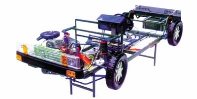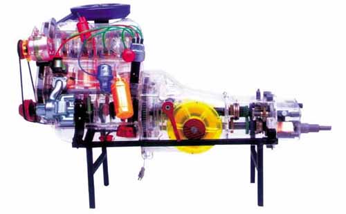 本品選用透明有機(jī)玻璃制作,內(nèi)中部件均以硬質(zhì)塑料料加工,用 螺絲固定在金屬高溫烘漆而成的車架上。各總成部分都以壓模成形加 工,代替過去膠粘合的方法,使產(chǎn)品在強(qiáng)度上有很大提高。發(fā)動(dòng)機(jī)總成用電機(jī)驅(qū)動(dòng),在油門處設(shè)有調(diào)速裝置,能演示發(fā)動(dòng)機(jī)轉(zhuǎn)速高低。離合器分離明顯,操縱靈活,離合器外殼整體壓模而成,變速箱和各檔齒輪用各種顏色表示,換檔靈活,手制動(dòng)美觀。后橋外形壓模而成,內(nèi)中主減速、差速轉(zhuǎn)動(dòng)自如,輪轂剎蹄壓模成型,剎蹄可調(diào)節(jié),前橋輪鼓可調(diào)整,轉(zhuǎn)向裝置以及電瓶、油箱、水箱,制動(dòng)管路分布清楚一目了然。電路采用對插件前后分布,燈架、風(fēng)窗、儀表板、后燈架用透明有機(jī)玻璃壓模成整體美觀逼真。