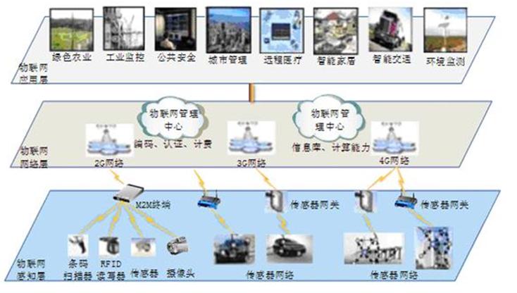 物聯網是一種通過射頻識別、紅外感應器、全球定位系統、激光掃描器等信息傳感設備,按約定的協議,把任何物品與互聯網連接起來,進行信息交換和通訊,以實現智能化識別、定位、跟蹤、監控和管理的網絡。該技術是集傳感技術、通信技術、網絡技術、計算機技術、控制技術等多種技術于一體的綜合應用學科。物聯網由應用層、網絡層、感知層等三層結構組成。