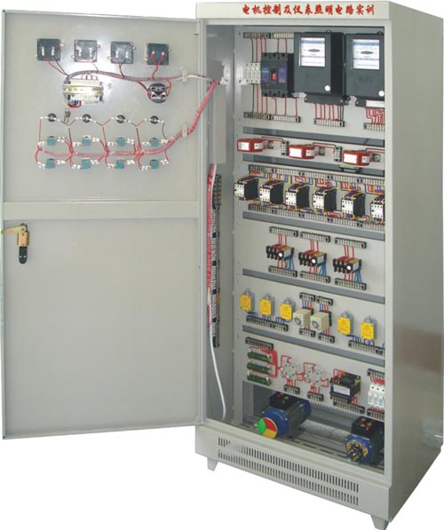 維修電工實訓考核柜主要由實訓柜、網孔板、實訓元器件組成。學生根據實訓線路進行元器件的合理布局,安裝、接線全部由學生自行完成,接近工業現場。能完成機床線路,電機控制線路,照明配電的模擬操作、安裝調試的綜合實訓,訓練學生動手能力和實操技能。實訓項目可自行確定,根據所選的項目選擇相應的元器件。該裝置也可作為電工考工的考核設備